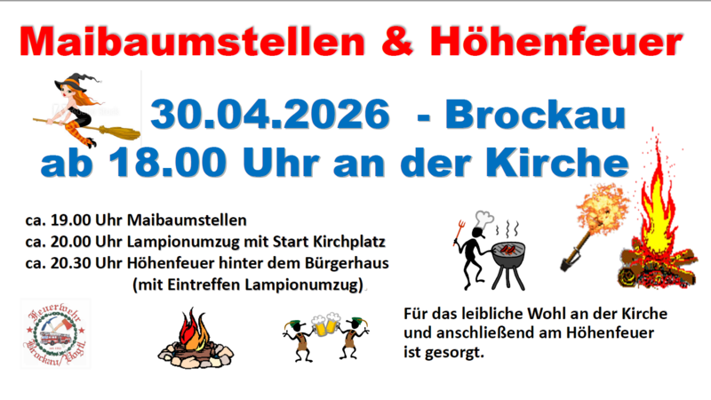 Ab dem 17. April 2026 kann für das Höherfeuer in Brockau in den markierten Bereich Brennholz abgelegt werden. Als Brennstoff darf nur naturbelassenes Holz (zum Beispiel Äste, Baum- und Heckenschnitt) verwendet werden. Das Verbrennen von Abfällen jeglicher Art ist verboten.